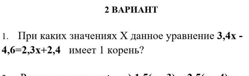 При каких значениях х данное уравнения 3,4-4,6=2,3х+2,4 имеет 1 корень