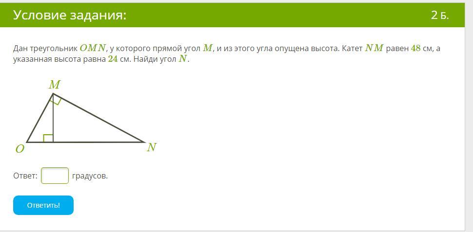 MH- катет в два раза больше гипотенузы, значит лежит против угла 30°
