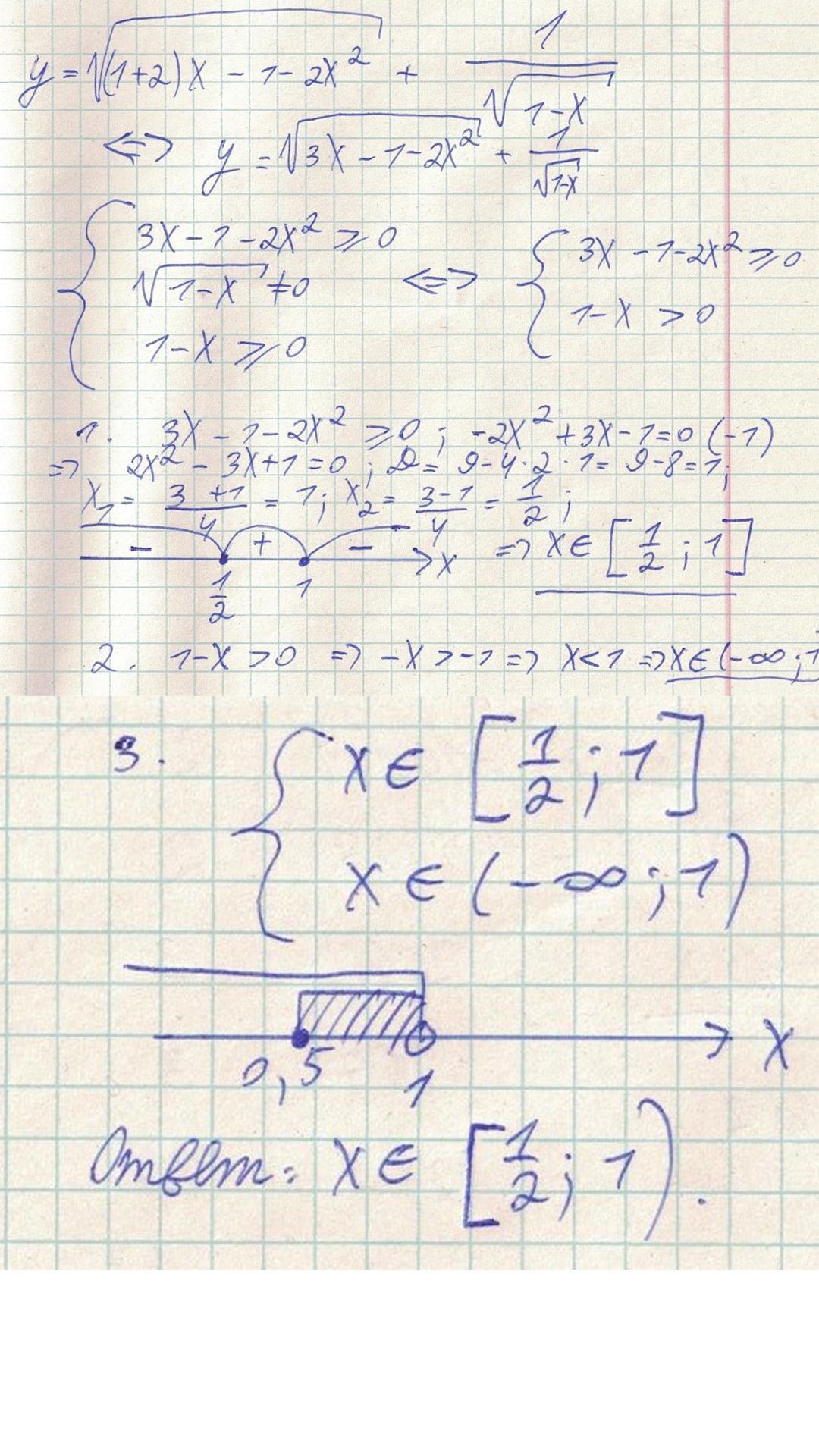 Область определения данной функции: x∈[1/2;1) Решение на фото.