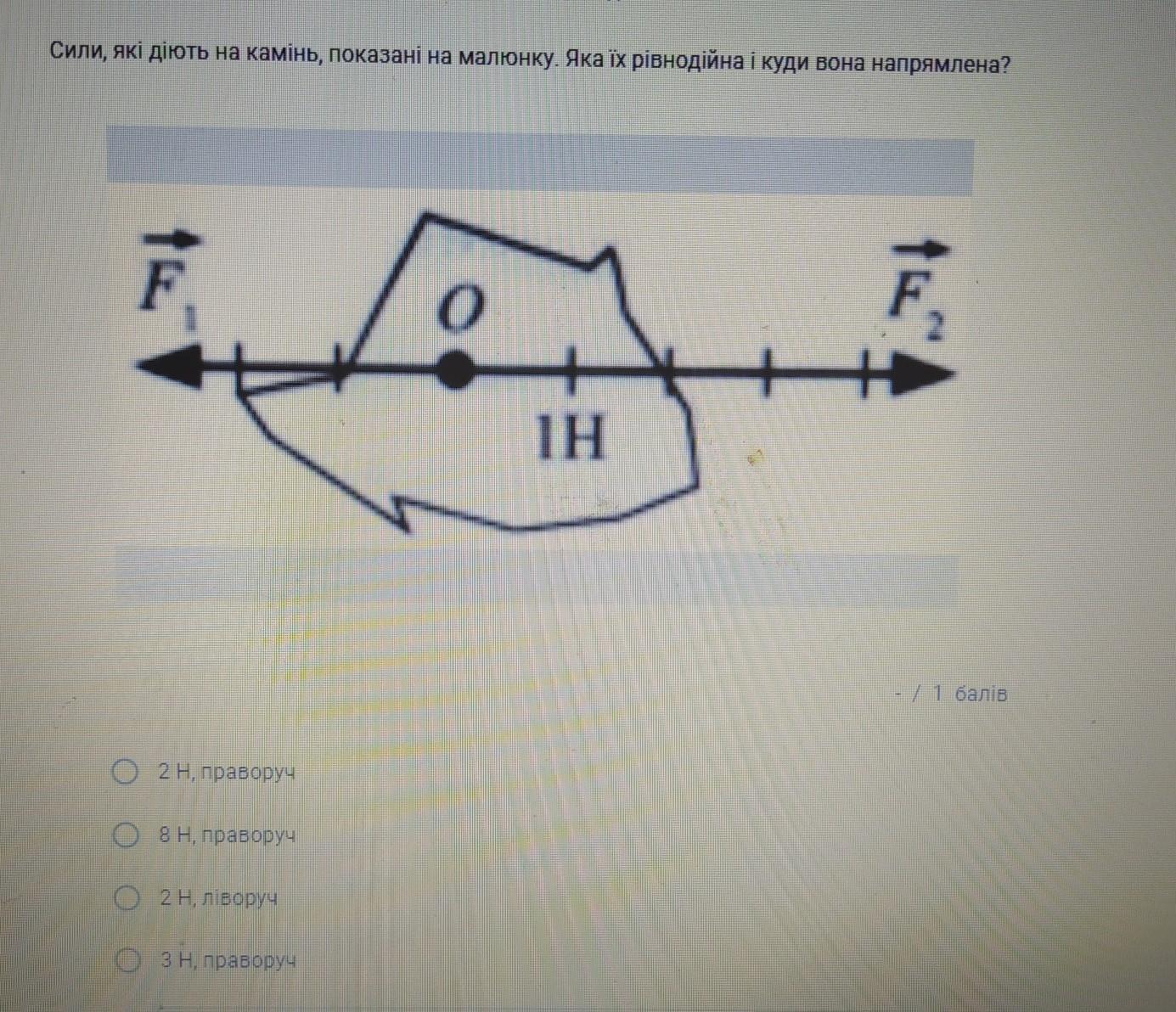 Равнодействующая сил равна F2-F1. Т. к. F2>F1, равнодействующая сил направлена в сторону F2.