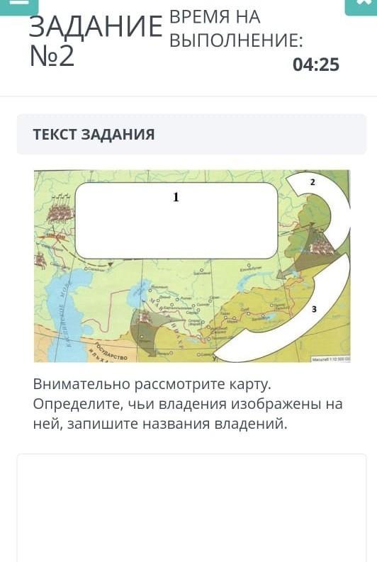 ЗАДАНИЕ No2 ТЕКСТ ЗАДАНИЯ Внимательно рассмотрите карту. Определите, чьи владения изображены на ней, запишите названия владений.