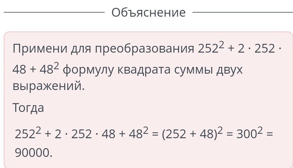 Вычисли рациональным способом 252^2 + 2 * 252 * 48 + 48^2.