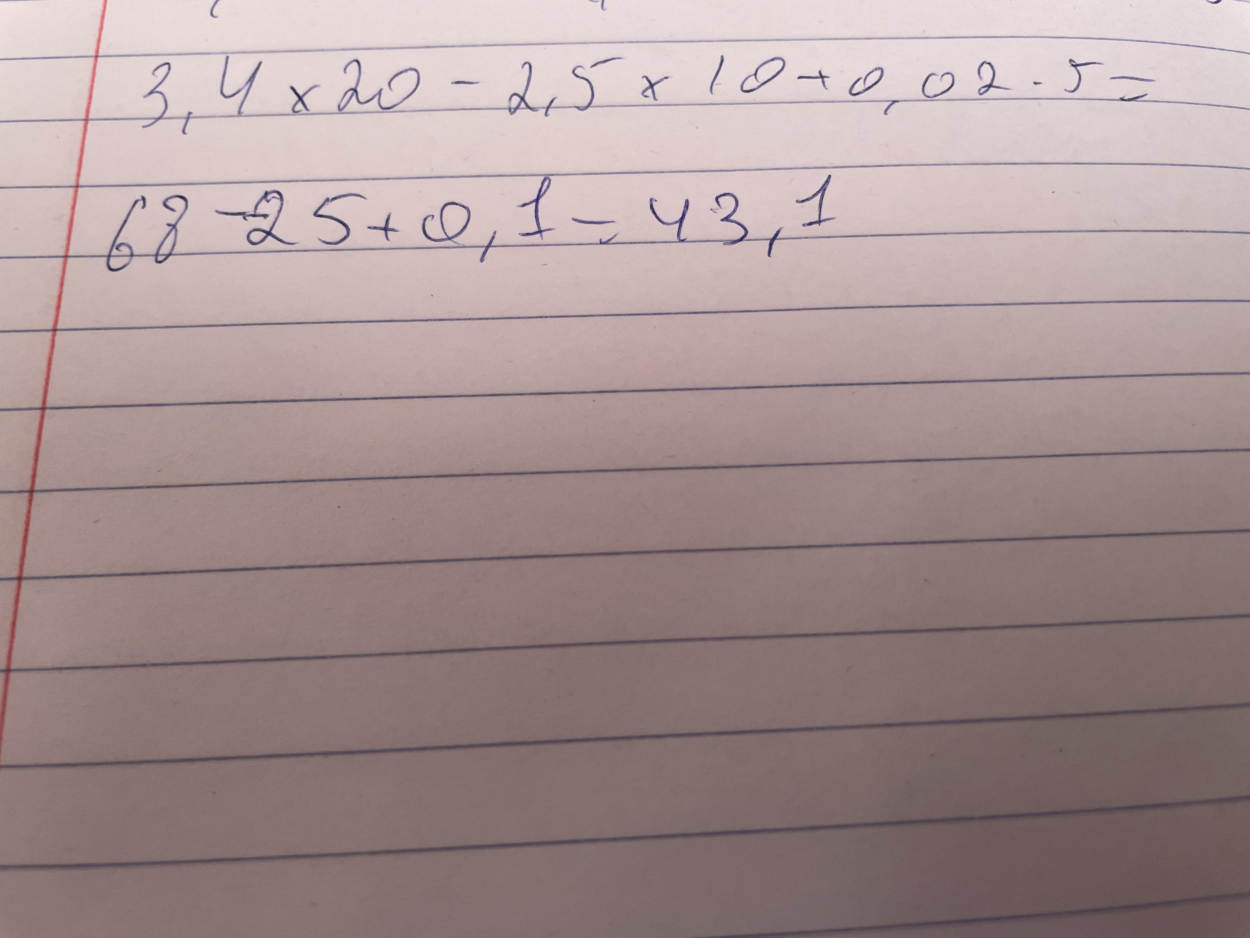 Пошаговое объяснение:3,4•20-2,5•10+0,02•5=68-25+0,1=43,1
