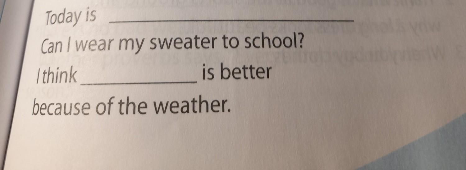 Today is cold. Can I wear my sweater to school? I think it is better because of the weather.