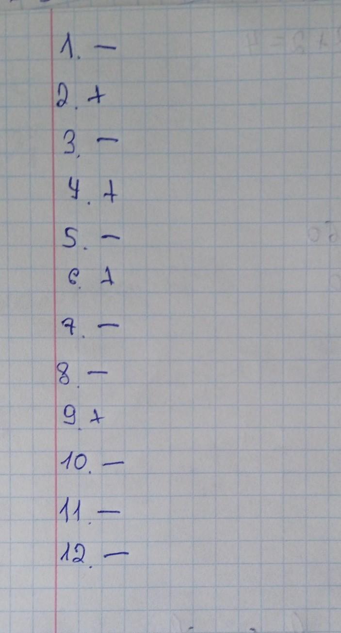 Якщо ви з твердженнями згідні, ставите значок +, якщо не згідні –