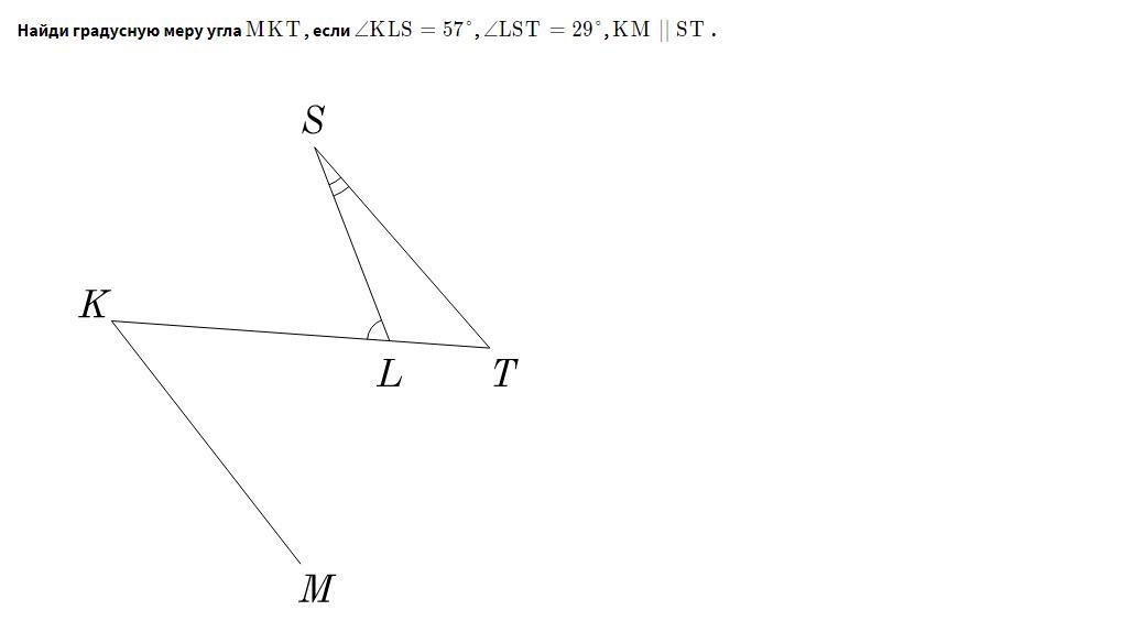 т.к угол rtk равен 83 градуса соответственно угол str равен 180-83=97 градусов.