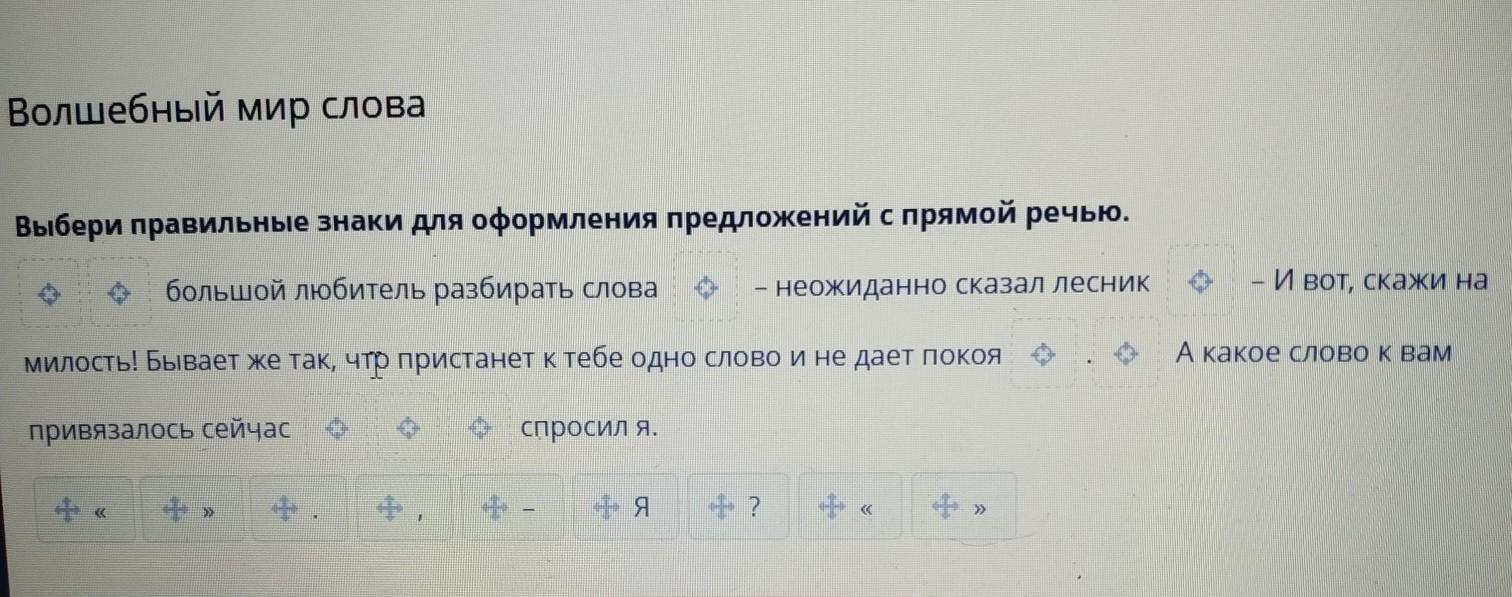 Выбери правильные знаки для оформления предложений с прямой речью.