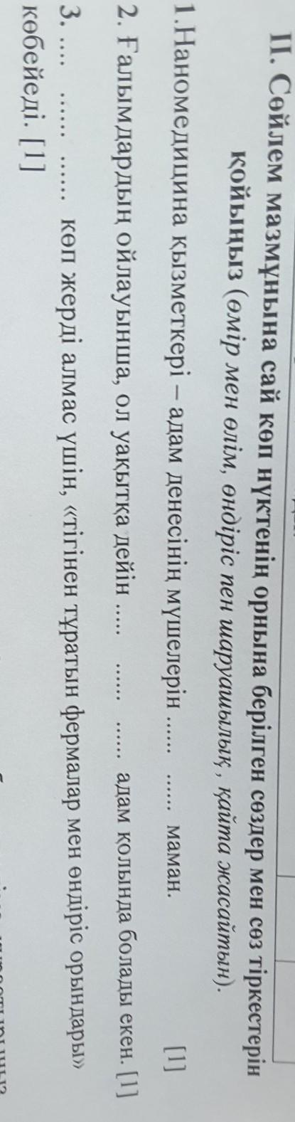 сөйлем мазмұнына сай көп нүктенің орнына берілген сөздер мен сөз тіркестерін қойыныз (өмір мен өлім ,өндіріс пен шаруашылық , қайта жасайтын).