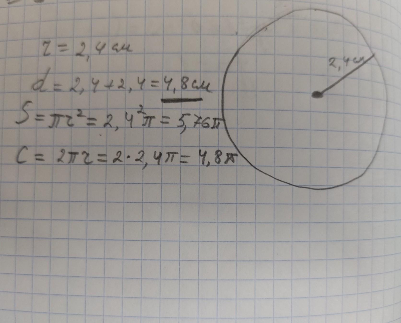 вычислите площадь круга образованного данной окружности