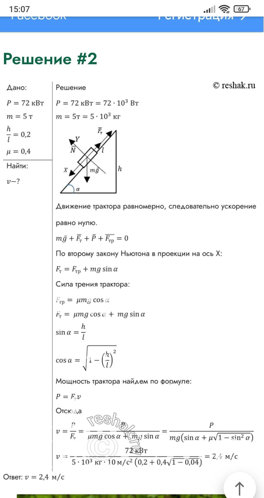 4. Трактор имеет тяговую мощность 72 кВт. С какой скоростью он может тянуть прицеп, если прицеп оказывает давление на грунт 5 МПа, площадь соприкосновения с грунтом 100 см2, коэффициент трения 0,4, масса трактора 15 т. (6 баллов) g