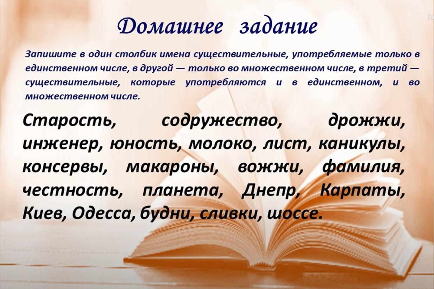 1:Старость,содружество,юность,молоко,честность,Днепр,Киев,Одесса,шоссе. 2: Дрожжи,каникулы,консервы,макароны,вожжи,Карпаты,будни,сливки.