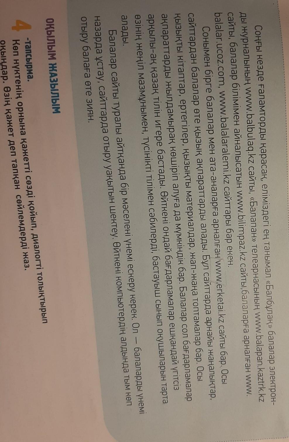 Казiр жай ғана ойын-сауықтан бөлек, мәдени-танымдык, интеллектуалдық деңгейі жоғары, пайдалы, кызык дуние пайда бола бастады. Соның бірі - балалардың көңілінен шығатын ғаламтор жуйесi мен ондағы балалар сайты деуге болады. Бұл әлі езі окып, жаза алмайтын балаларға керемет базарлық емес пе?! - шын мәнінде,