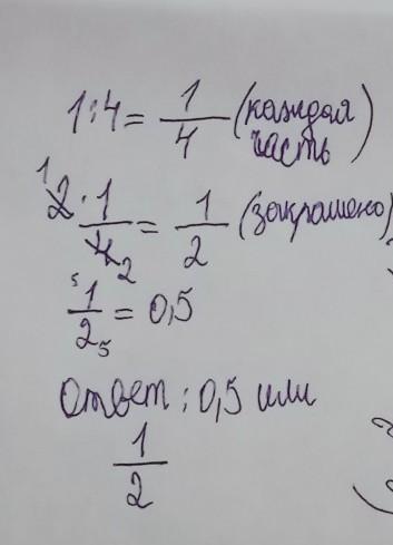 722. На рисунке 4.1 четыре равные фигуры образуют круг. Нарисуйте эти фигуры в тетради. Какая часть фигуры закрашена синими ветом? Запишите в виде обыкновенной дроби.