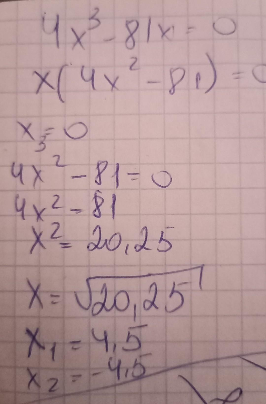 x = 0 или 2x - 9 = 0 или 2x + 9 = 0