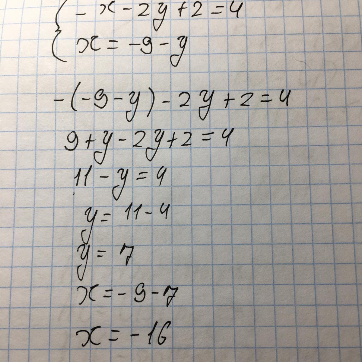 x = -9 -y = -9 -7 = -16