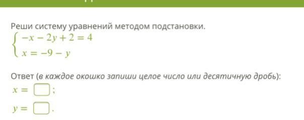 Реши систему уравнений методом подстановки.