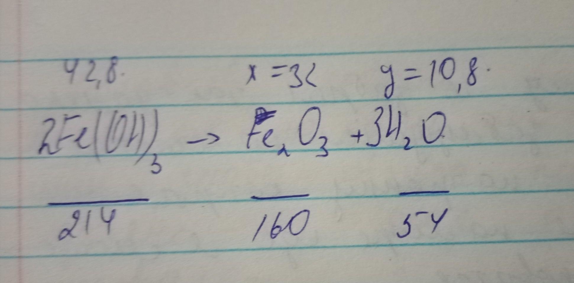 ПА-МА-ГИ-ТЕ определите массу оксида железа(III) и воды,которые можно получить при разложении 42,8г гидроксида железа(III)