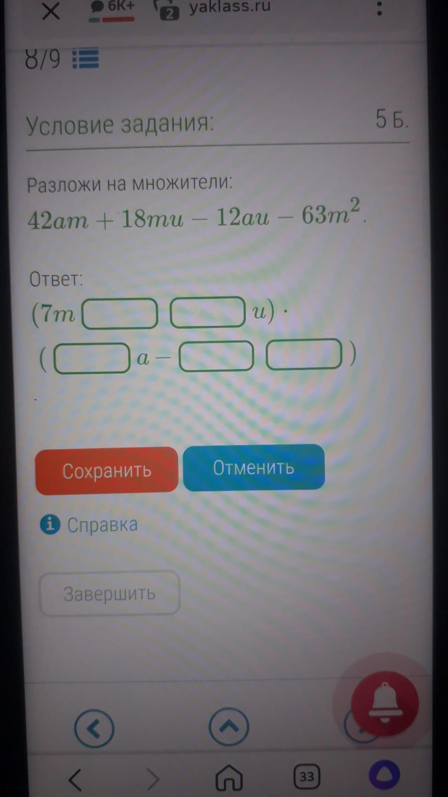 63am+12mu−18au−42m^2=(63am-42m^2)+(12mu-18au)=7m(9a-6m)+2u(6m-9a)=