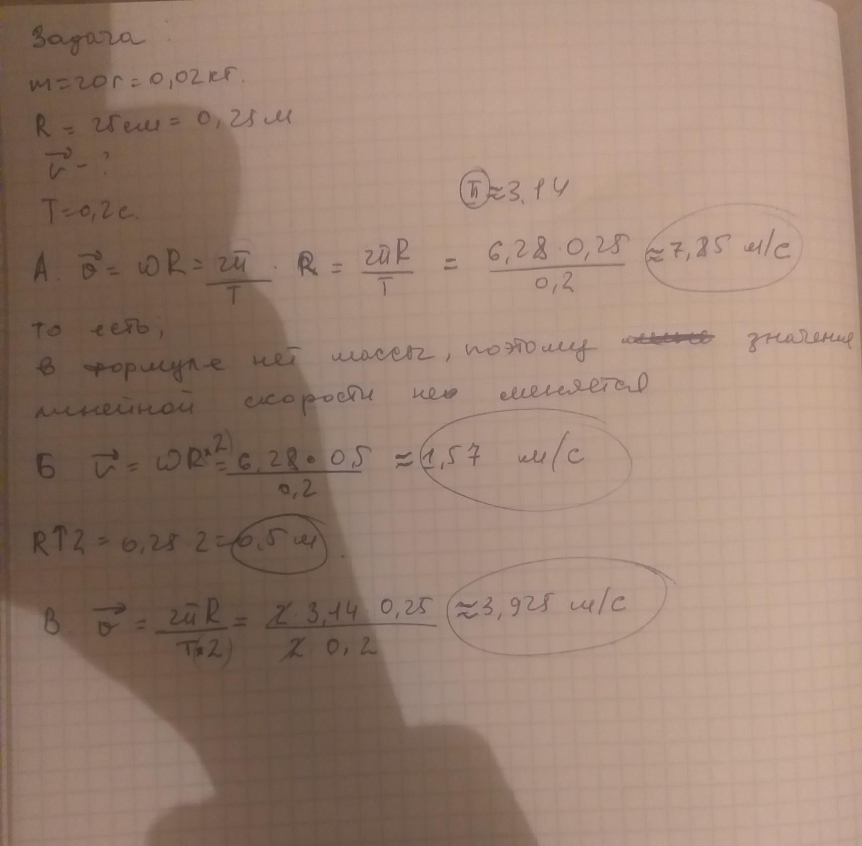 надеюсь именно вычисления вам понятны , единственное что я там написала это в пункте А.значение линейной скорости остается постоянным так как в формуле нет массы
