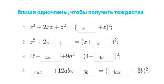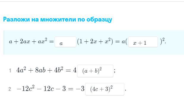 можешь еще пожалуйста с этим помочь:1)4x^2+16x+16= 2)9a^2-6ab+b^2= 3)c^2q^2-2cq+1= 4)9x^2+24xy+16y=