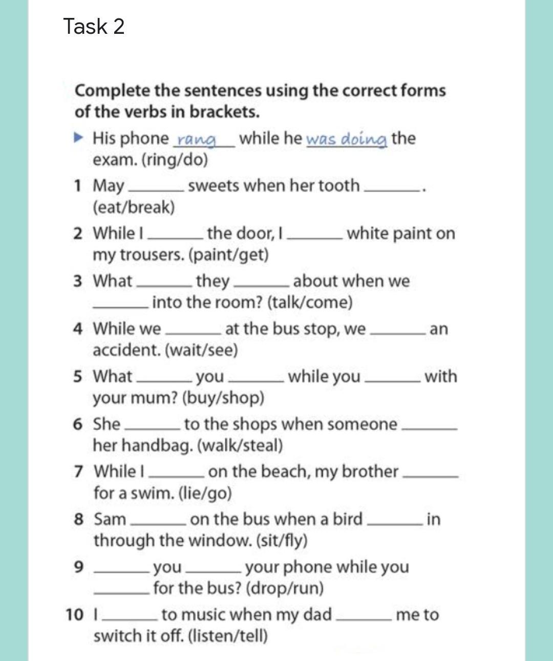 Нужно вставить на место пропусков слова в правильном времени ( использовать только Past Simple и Past Continuous)