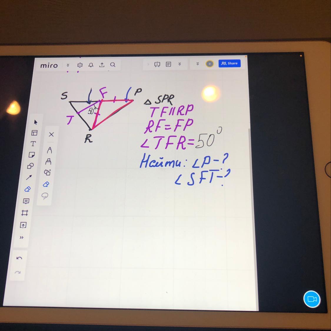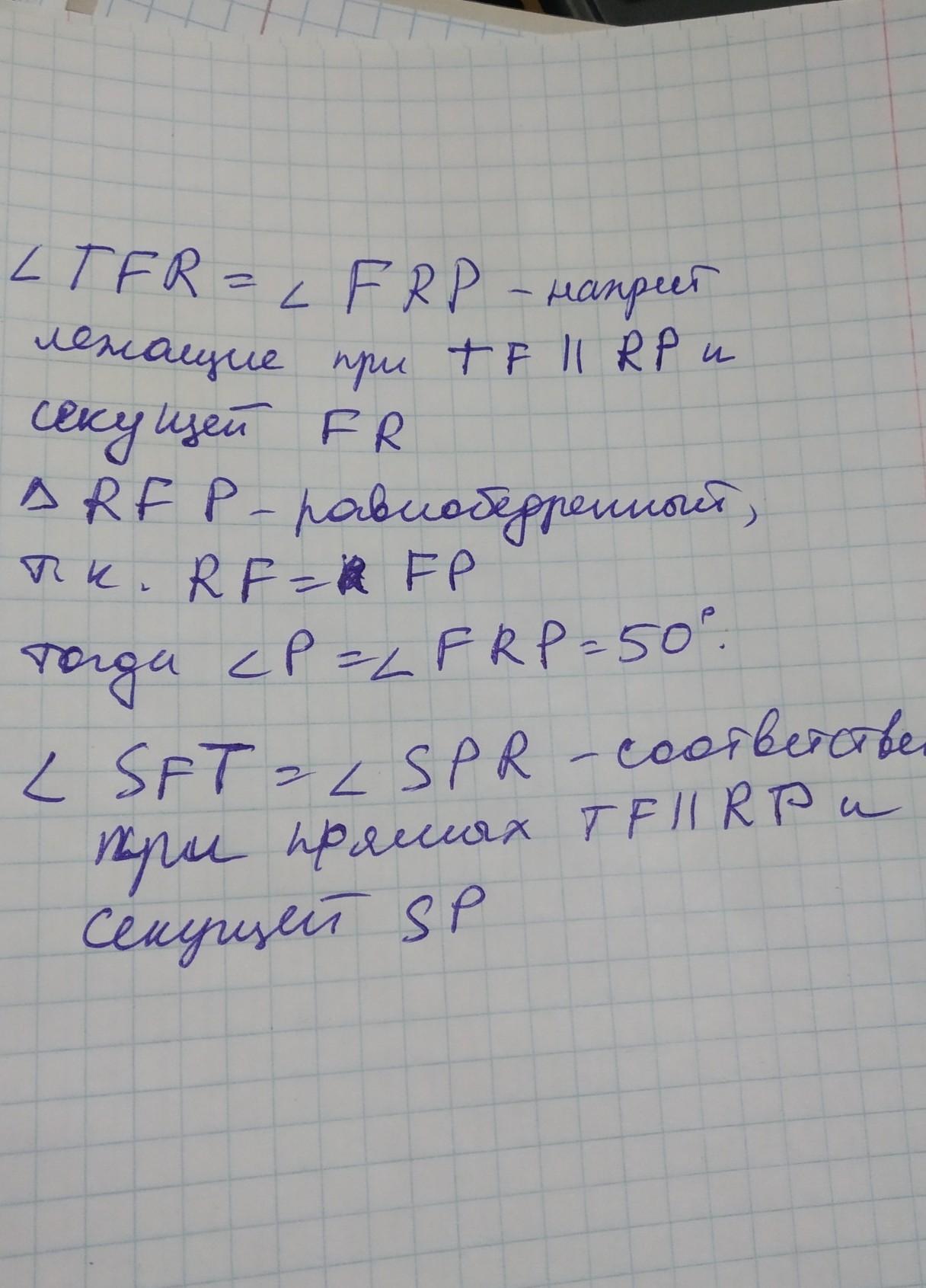 ∠SFT=∠P, соответственные углы при параллельных прямых TF||RP, секущей FP.