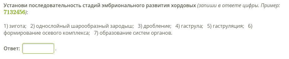 зигота- дробление- однослойный шарообразный зародыш- гаструла- гаструляция - образование систем органов- формирование осевого комплекса