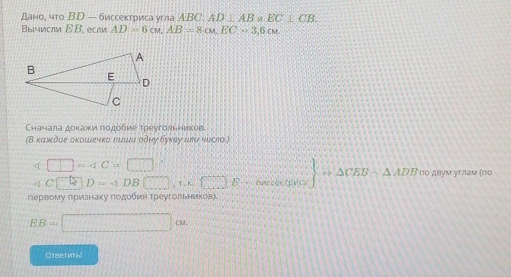 =>СЕВ~АDB по двум углам(по 1 признаку подобия треугольников)