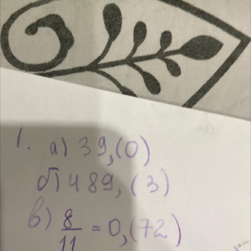 1.Запишите число в виде бесконечной десятичной периодической дроби: а) 39; б) 489,3; в)8/11; г)5/13 , ОЧЕНЬ НУЖНО! СРОЧНО !