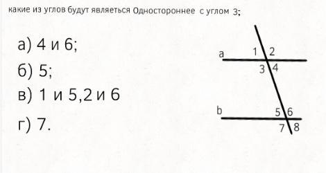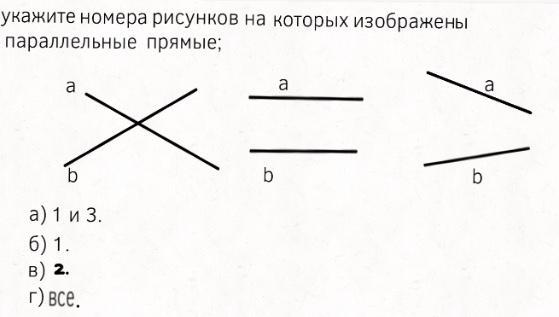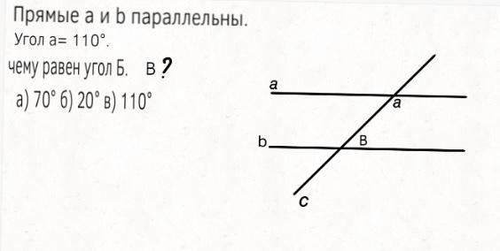 Параллельными прямыми является второй рисунок , ответ В . Во втором вопросе правильного ответа по сути нет , так как односторонние углы это не только 4 и 6, но и 3 и 5 . В третьем вопросе ответ 70 градусов , так как в сумме односторонние углы дают 180 градусов . 180-110=70