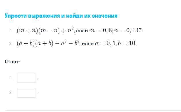 1) (m+n)(m-n)+n²=m²-n²+n²=m²=0,8²=0,64
