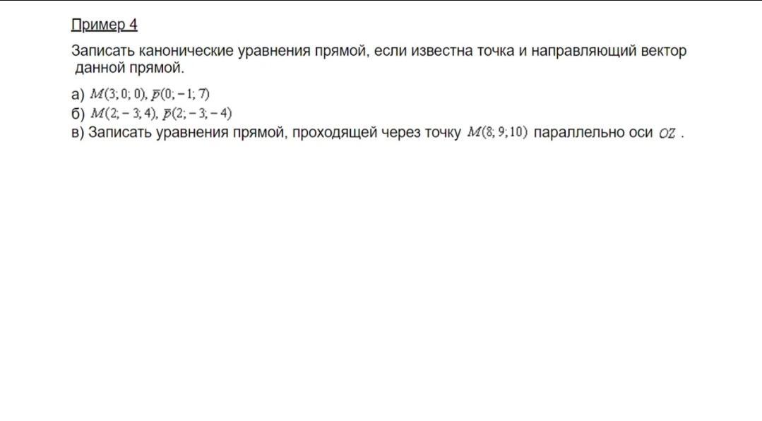 Если дана точка М( x₀;y₀;z₀) и направляющий вектор p(p₁;p₂;p₃), то каноническое уравнение прямой записывается так: