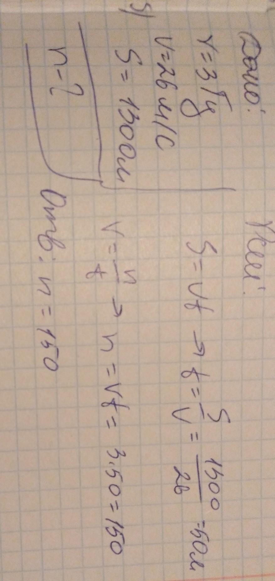 Частота колебаний крыльев вороны в полете равна в среднем 3 Гц. Сколько взмахов крыльями сделает ворона, пролетев путь 1300 м со скоростью 26 м/с?