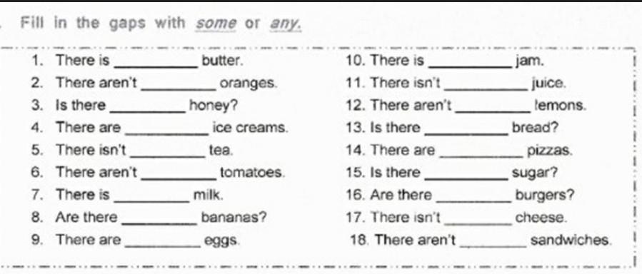 1)some 2)any 3) any 4) any 5)some 6) any 7) some 8)any 9) any 10) some 11)some 12) any 13) some 14) any 15) some 16) any 17) any 18) any