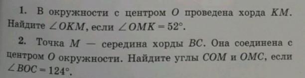 Треугольник ОКМ равнобедренный , стороны ОК и ОМ радиусы окружности.В равнобедренном треугольнике углы при основании равны.Значит, ∠ОКМ=∠ОМК=52°