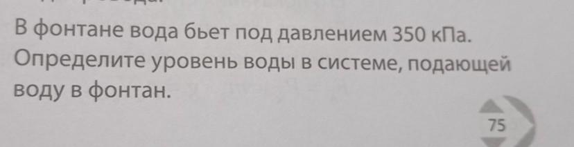 в фонтане вода бьёт под давлением 350 кПа. определите уровень воды в системе подающий воду фонтан