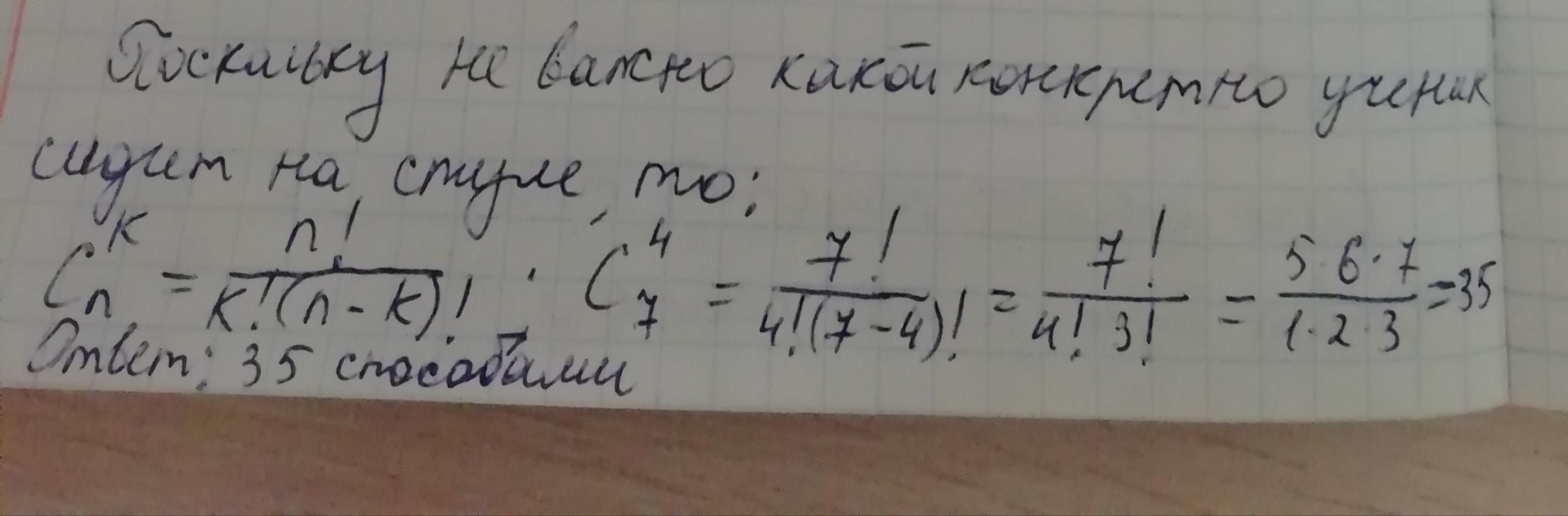 сколькими способами можно рассадить 4 учеников на 7 стульев