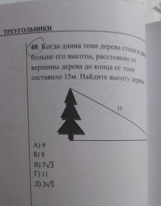 расстояние от вершины дерева до конца тени - гипотенуза.