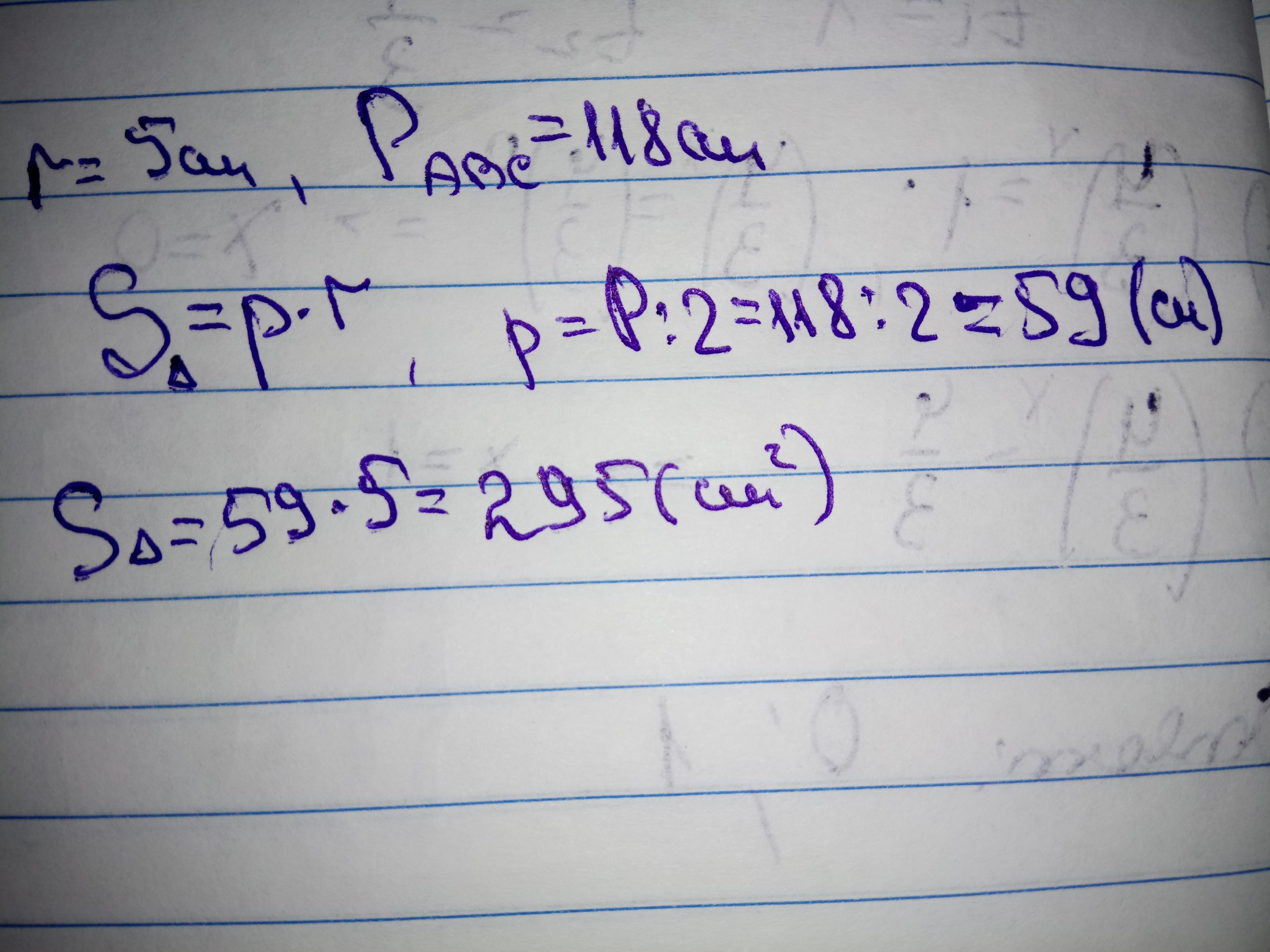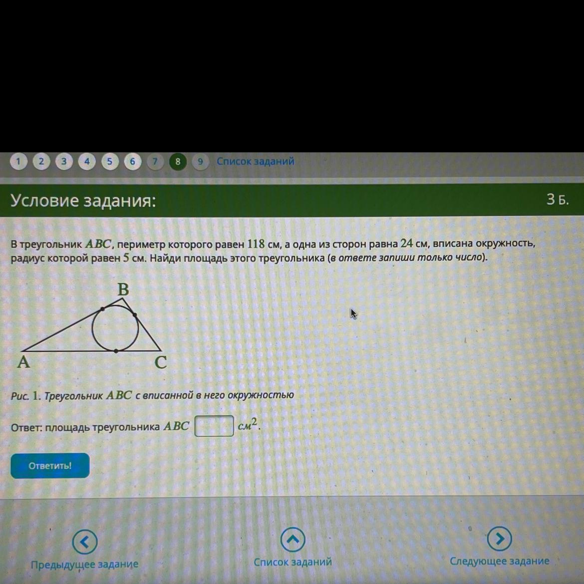радиус которой равен 5 см. Найди площадь этого треугольника (в ответе запиши только число).