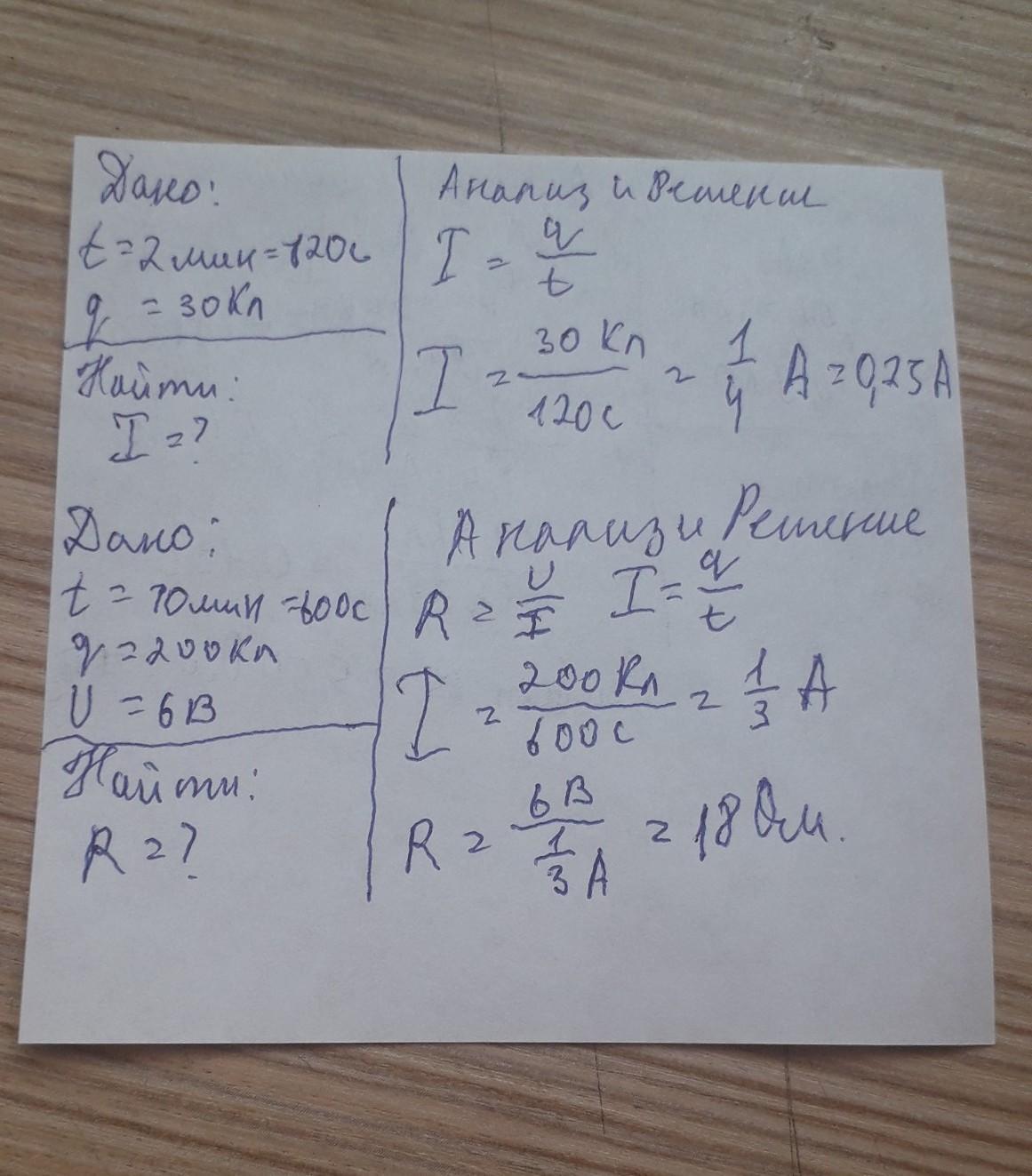 Определите сопротивление резистора, если за время 10 мин через него проходит заряд 200 Кл. Напряжение на концах резистора равно 6 В.