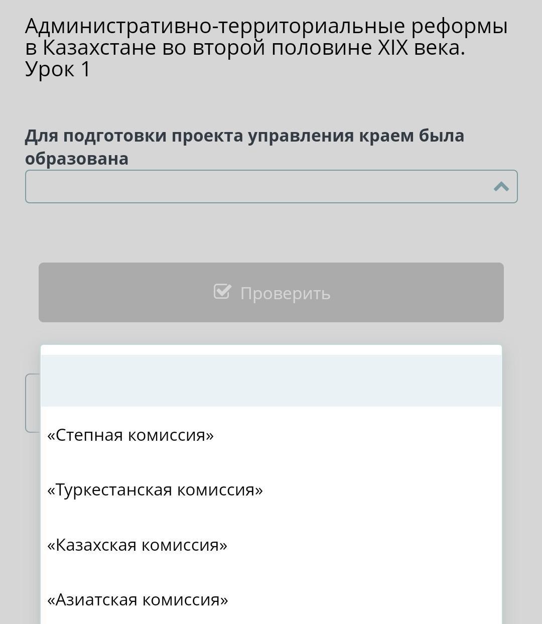 Административно-территориальные реформы в Казахстане во второй половине ХIХ века. Урок 1 для подготовки проекта управления краем была образована?