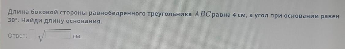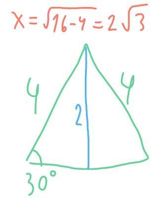 Катет, лежащий против угла в 30 градусов, равен половине гипотенузы, 4/2=2