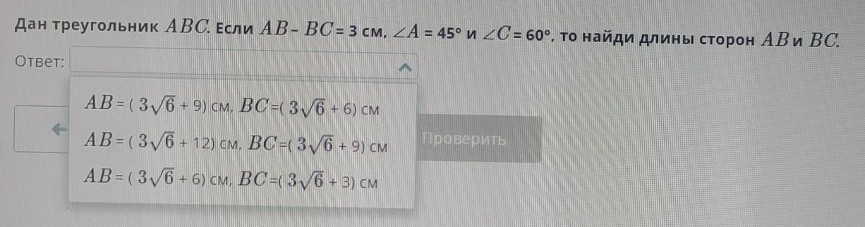 Значит АВ=3√6+9, а ВС=3√6+6, первый ответ