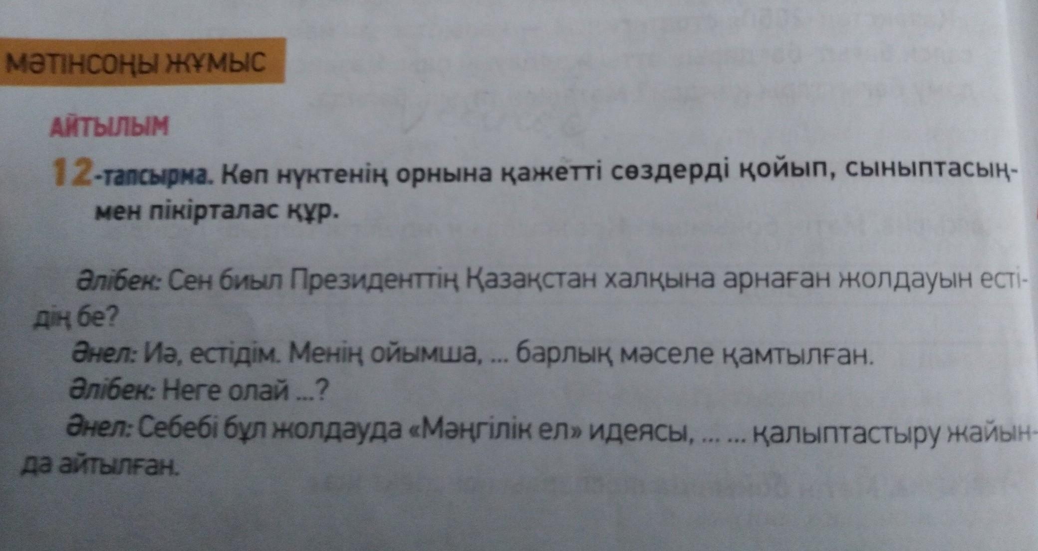 12-тапсырма. Көп нүктенің орнына кажетті сөздерді қойып, сыныптасын мен пікірталас құр. ДАЮ 30Б СРОЧНО..
