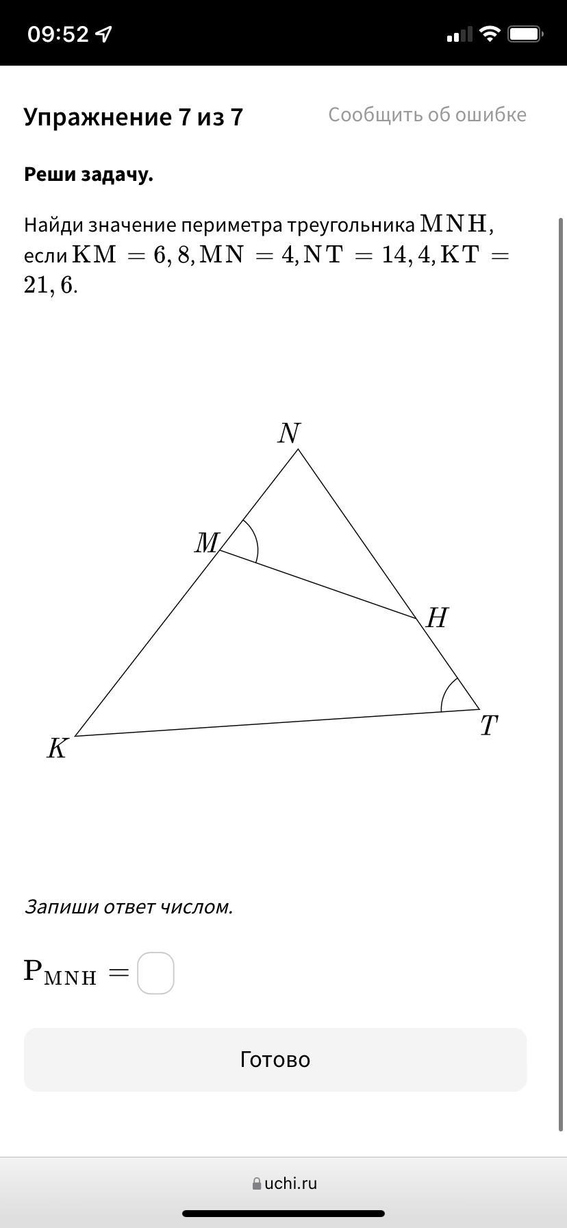 рассмотрим ΔMNH и ΔTNK