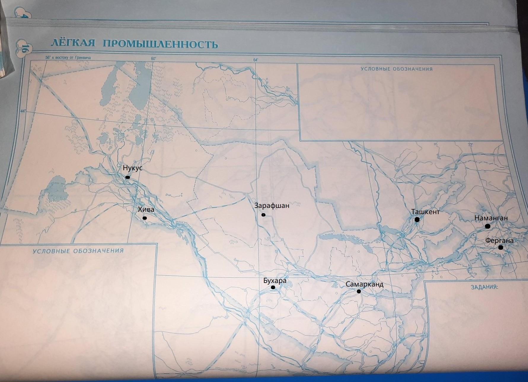 На контурную карту нанесите самые крупные текстильные центры Узбекистана