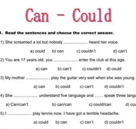 Could используется для прошлого времени,can для настоящего. Couldn't это отрицание в прошлом,can't в настоящем