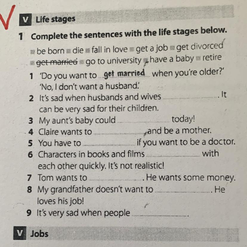 Ответ:2)get divorced 3)be born . 4)have a baby 5)go to university 6)fall in love 7)get a job8)retire 9)die
