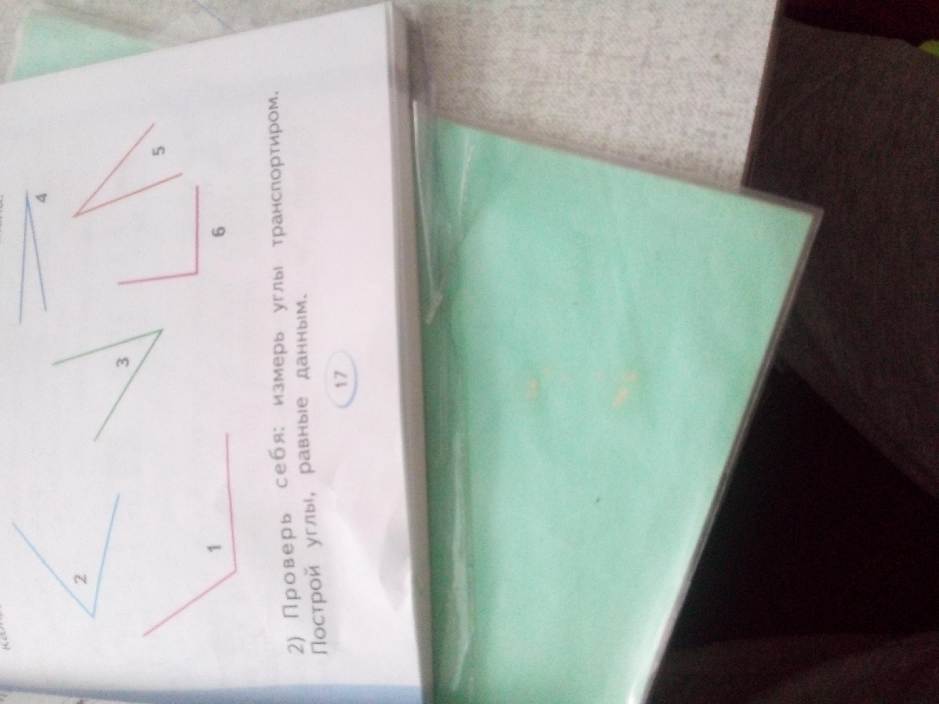 2) проверь себя измерь углы транспортиром. Построй углы равные данным.