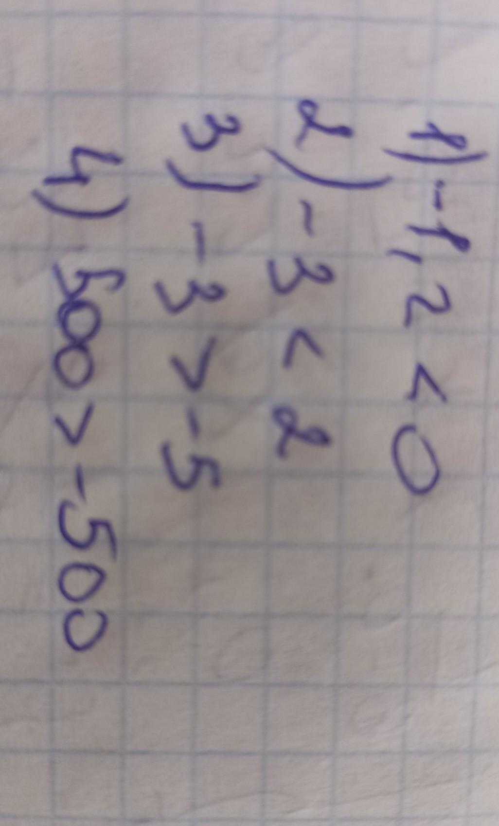 845. Сравните числа и соедините их знаком неравенства: 1) -1,2 и 0; 2) -3,2; 3) -3 и -5; 4)500 и-500.